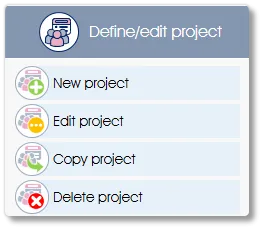 The Define/edit project menu will allow you to create a new assessment project or edit, copy or delete an existing project. A list of existing projects will be displayed in the work area.