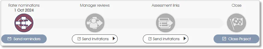 Reminder emails can be sent more than once – simply click on the Send or Resend reminders button to send reminder emails for a second or subsequent time, or click on the Send reminder emails function in the Administration toolbox group in the Engage ASSESS>MANAGE PROJECT side panel.